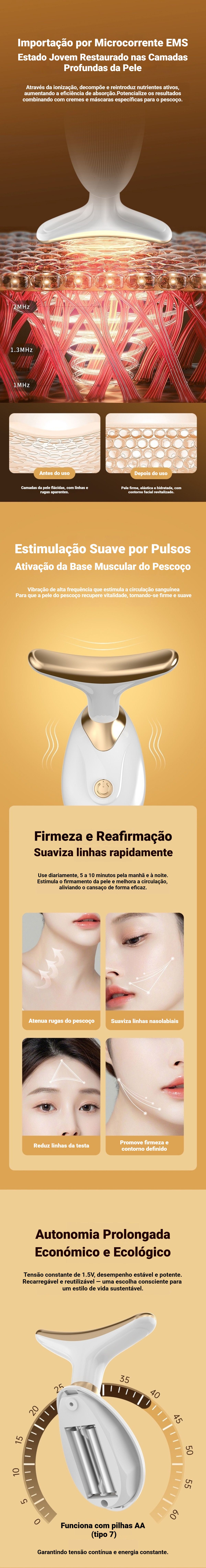 • Redução Rápida de Linhas Finas: Atenua rugas no pescoço, sulcos nasolabiais (bigode chinês) e linhas da testa.