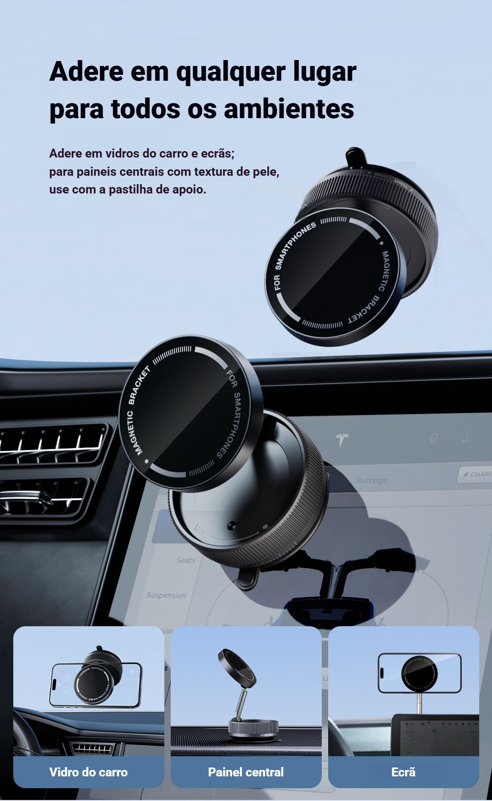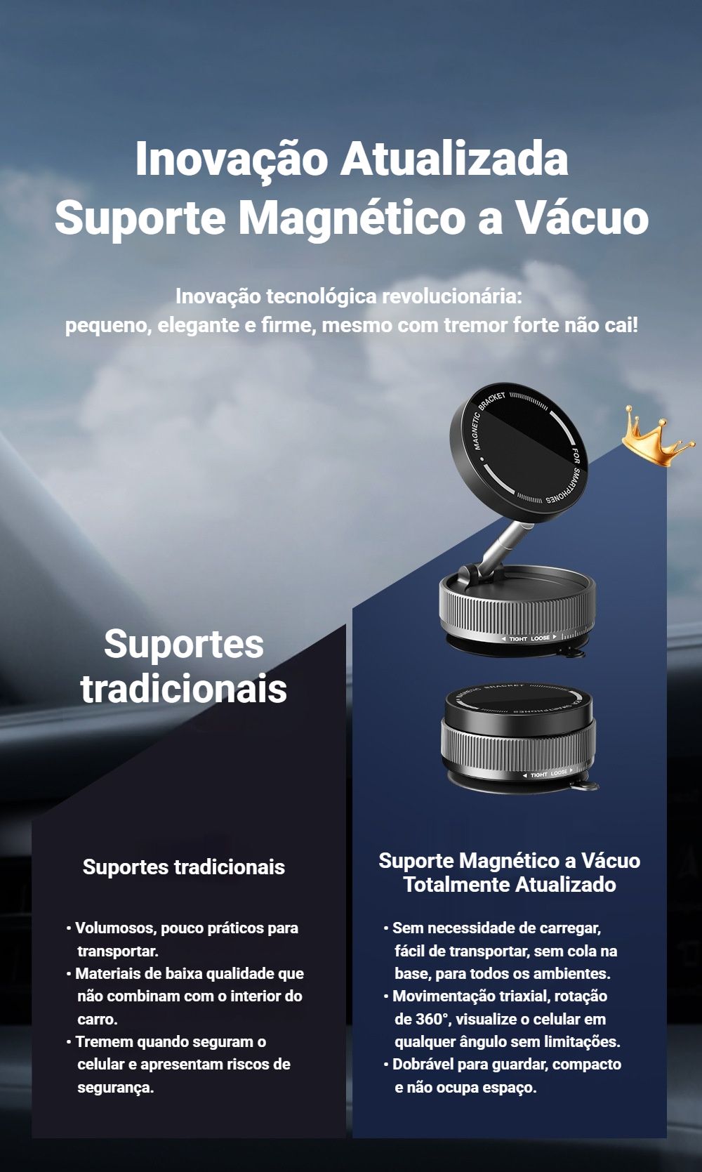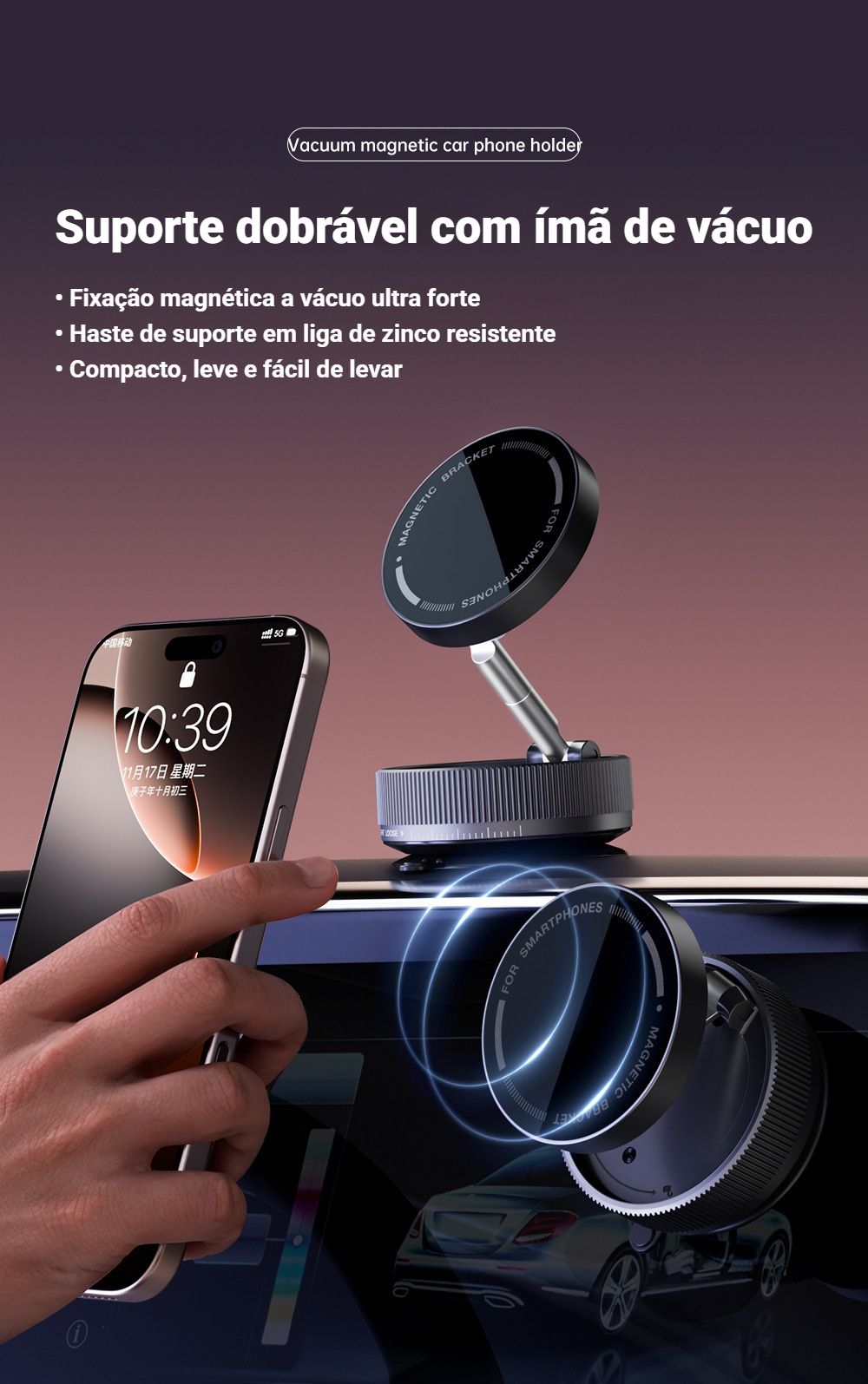 Olá, amiguinhos 🤗! Conheça o seu novo parceiro perfeito para o celular no carro e em todos os lugares — o Suporte Magnético a Vácuo K10A, prático e SUPER SEGURO 💪!