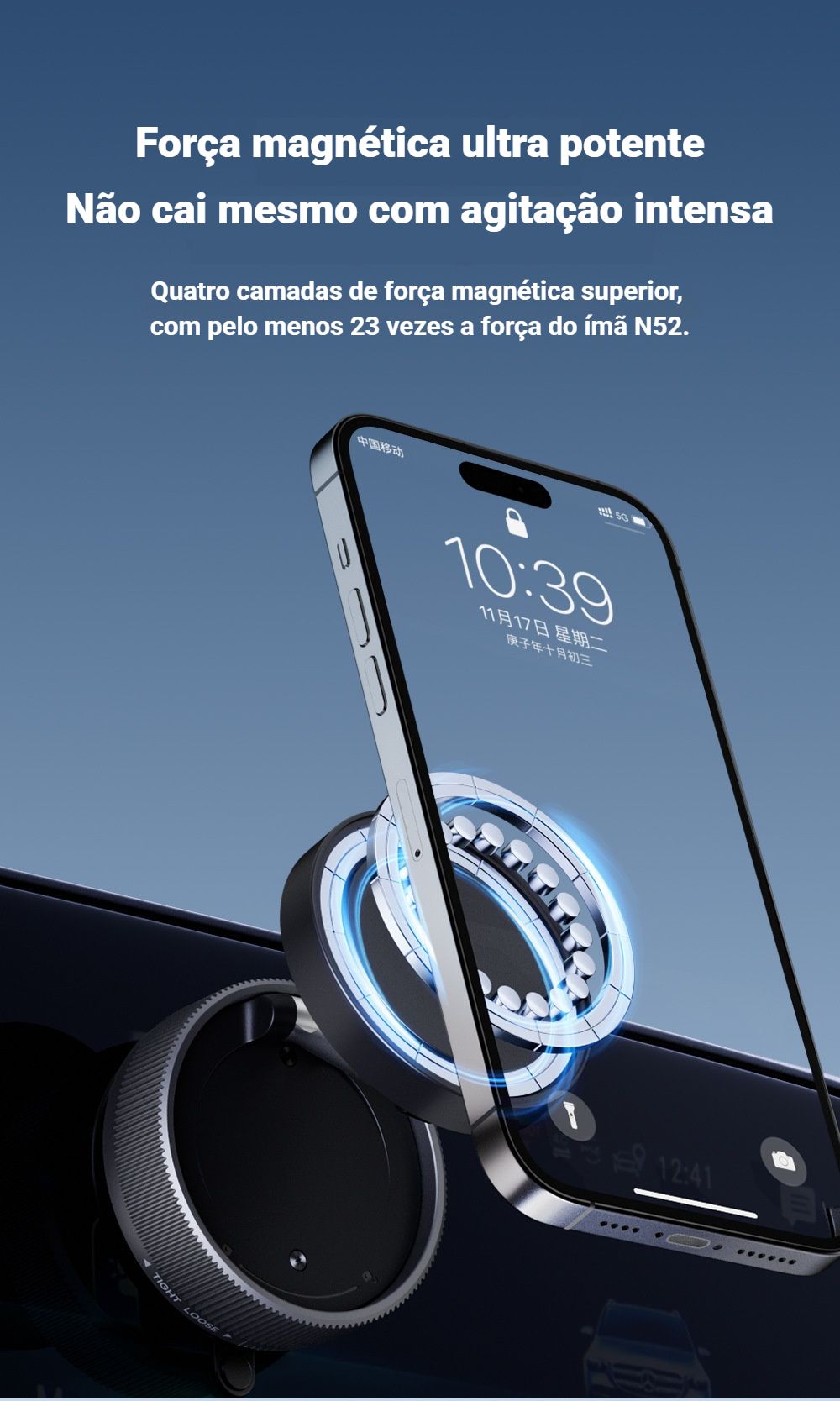- 🧲 Força magnética ULTRA POTENTE: 4 camadas de ímãs, 23x mais forte que o ímã N52! Rasteje, balance, shake — ele NÃO CAI 🚀