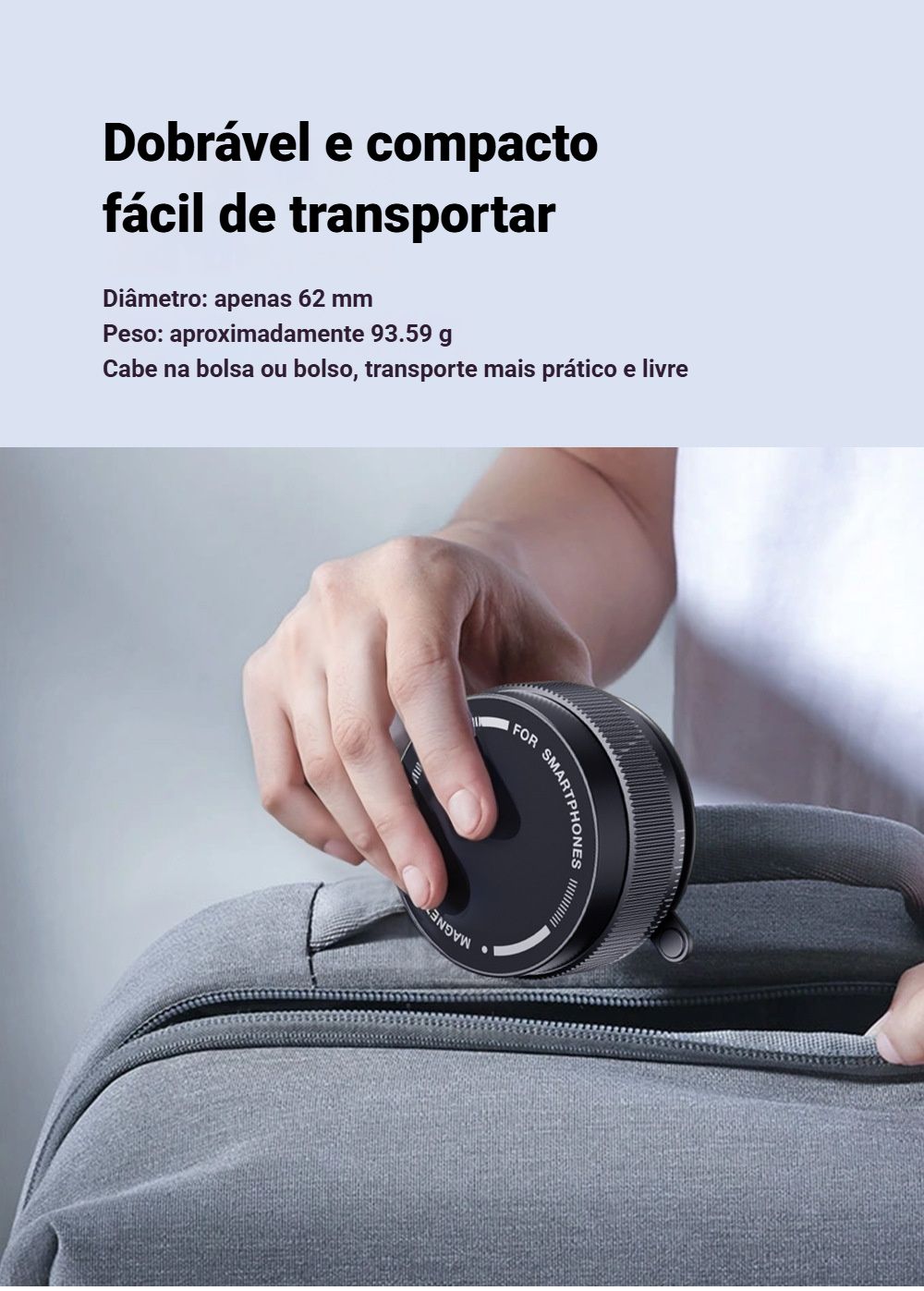Não mais suporte chato e grande 🚫, esse aqui é mini, elegante e cheio de funcionalidades que vão te surpreender 🥳. Vamos conhecer todos os seus super poderes 🎉!