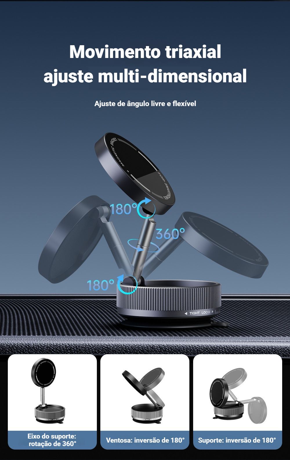 - Eixo do suporte: rotação 360° — veja videos, faca ligações, use o GPS sem estresse 📱