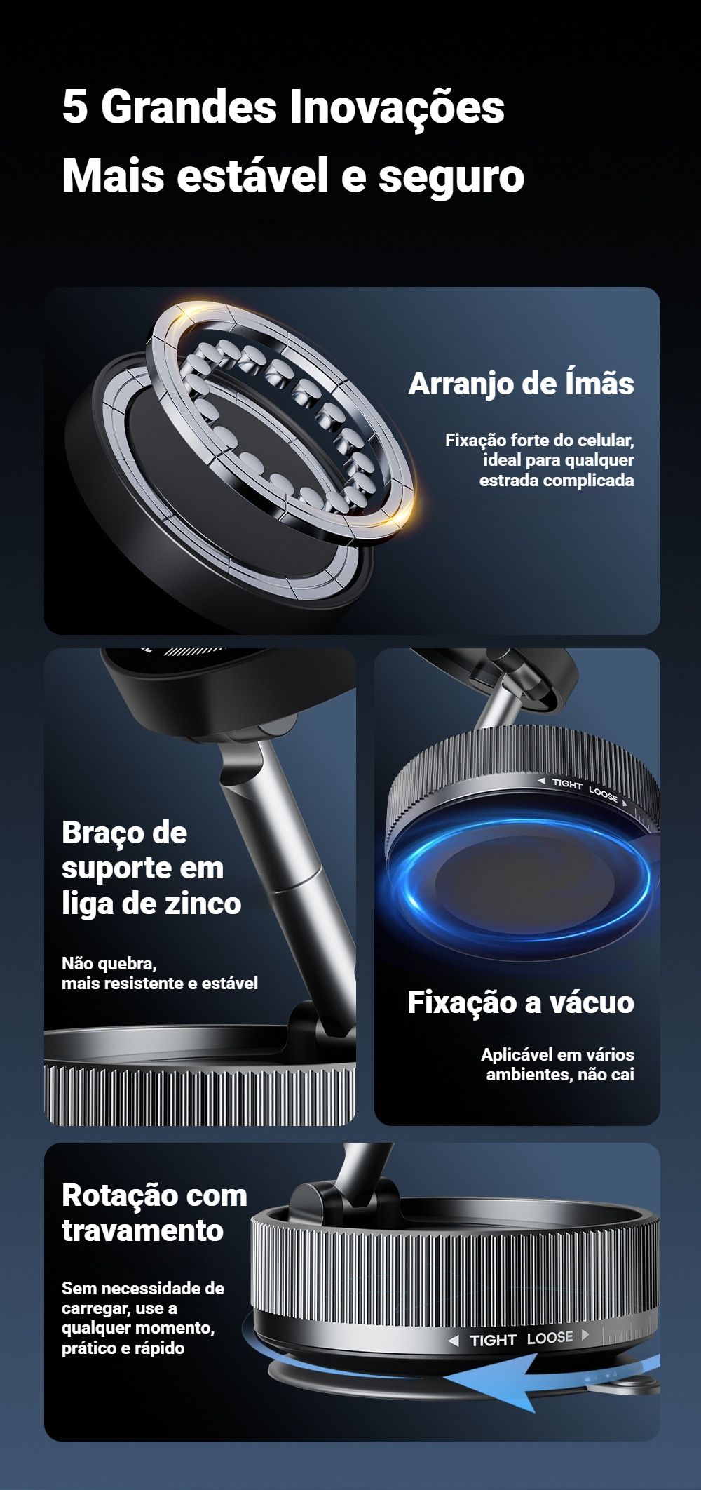 - 🔄 Rotação 360° com travamento: Sem precisar carregar, use a qualquer momento, rápido e prático 😎