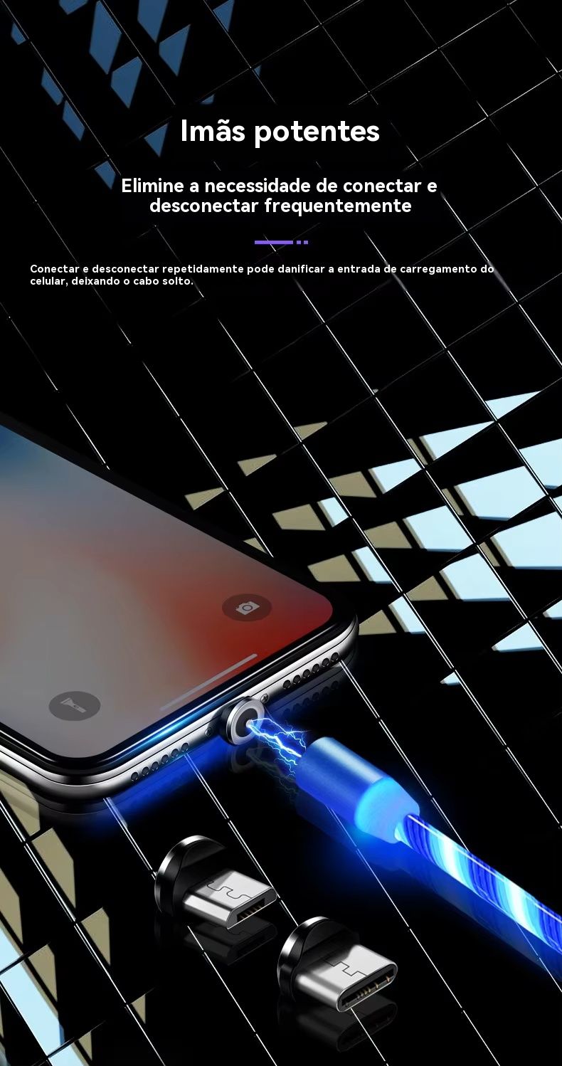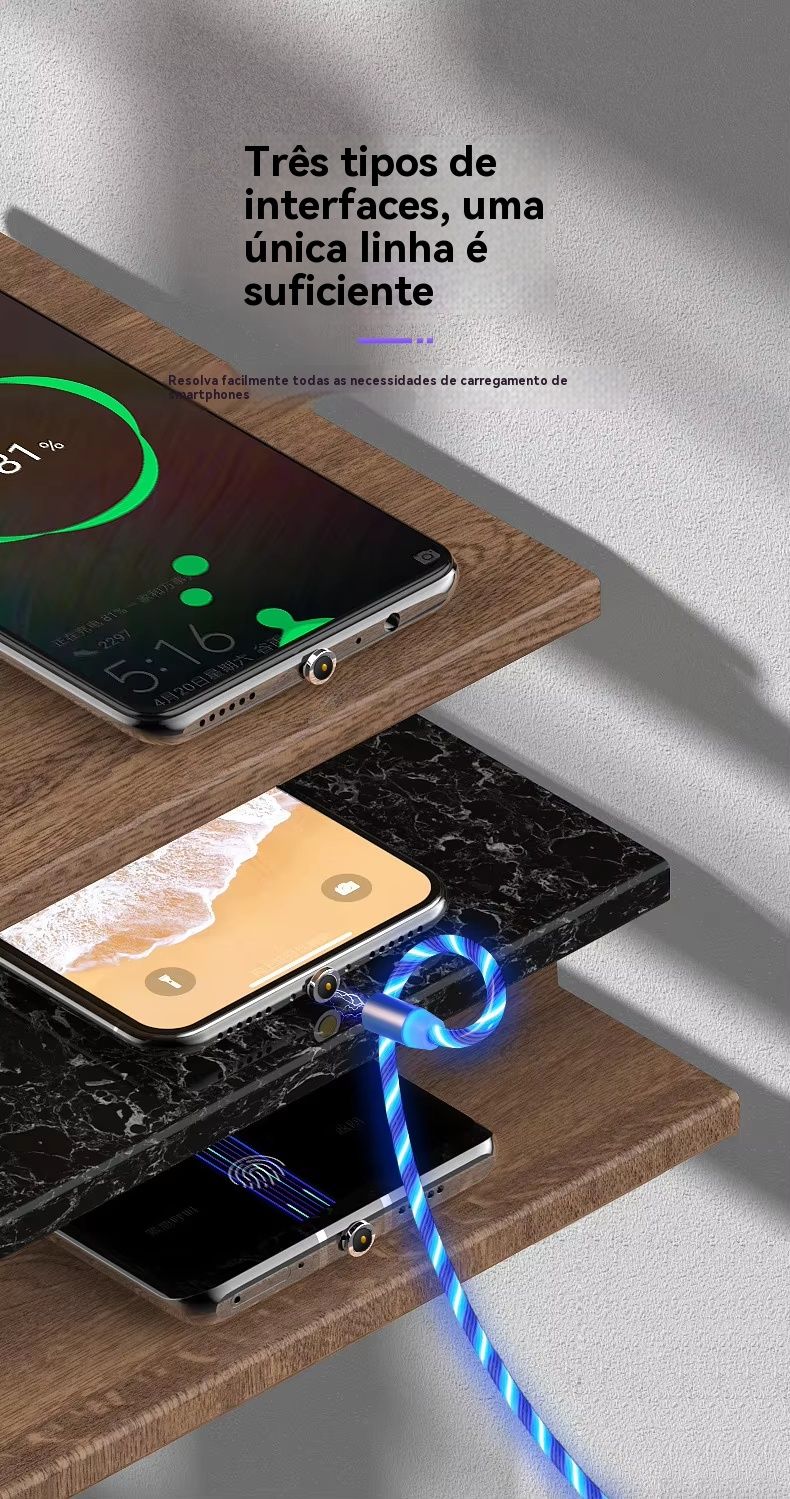 - (Colorido) Conjunto de 1 metro [um cabo + três conectores magnéticos] embalados individualmente